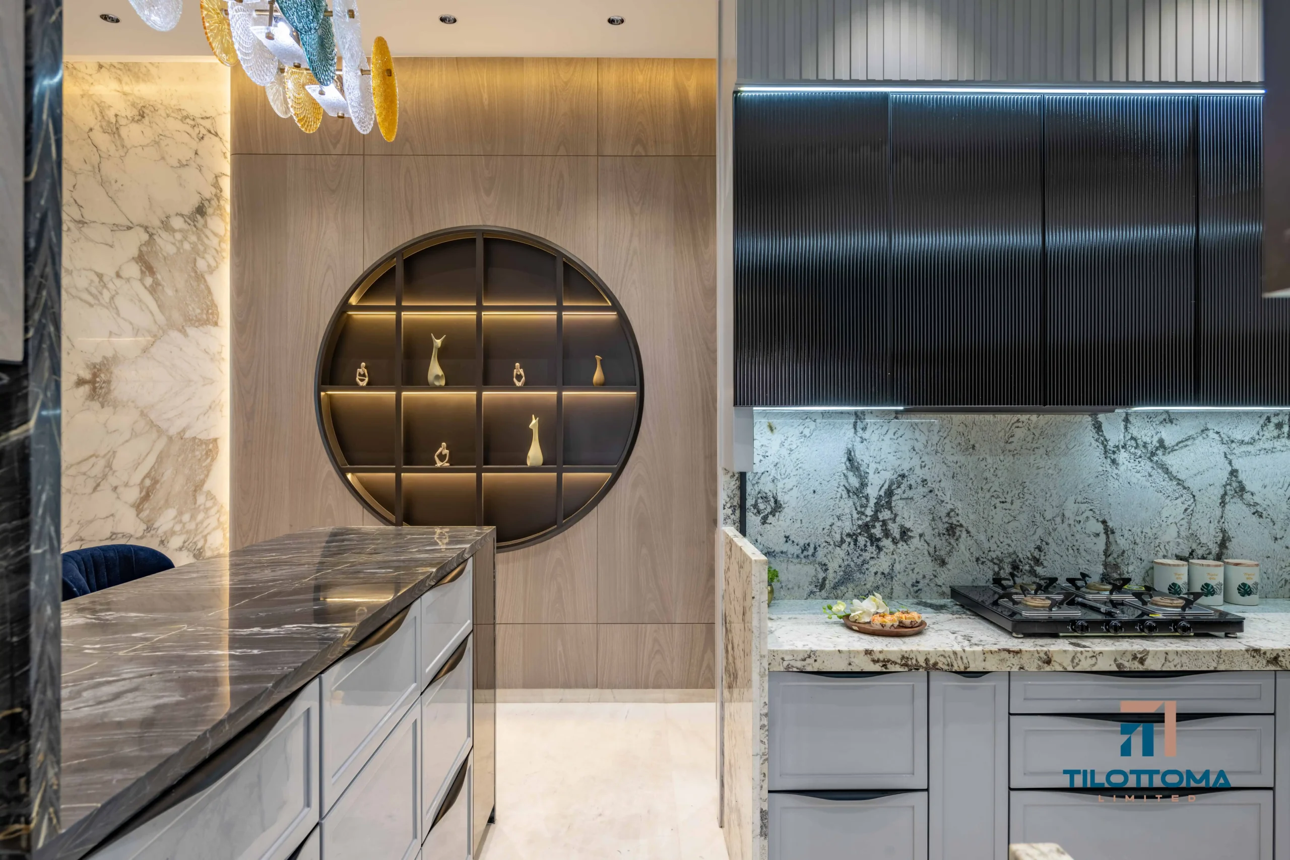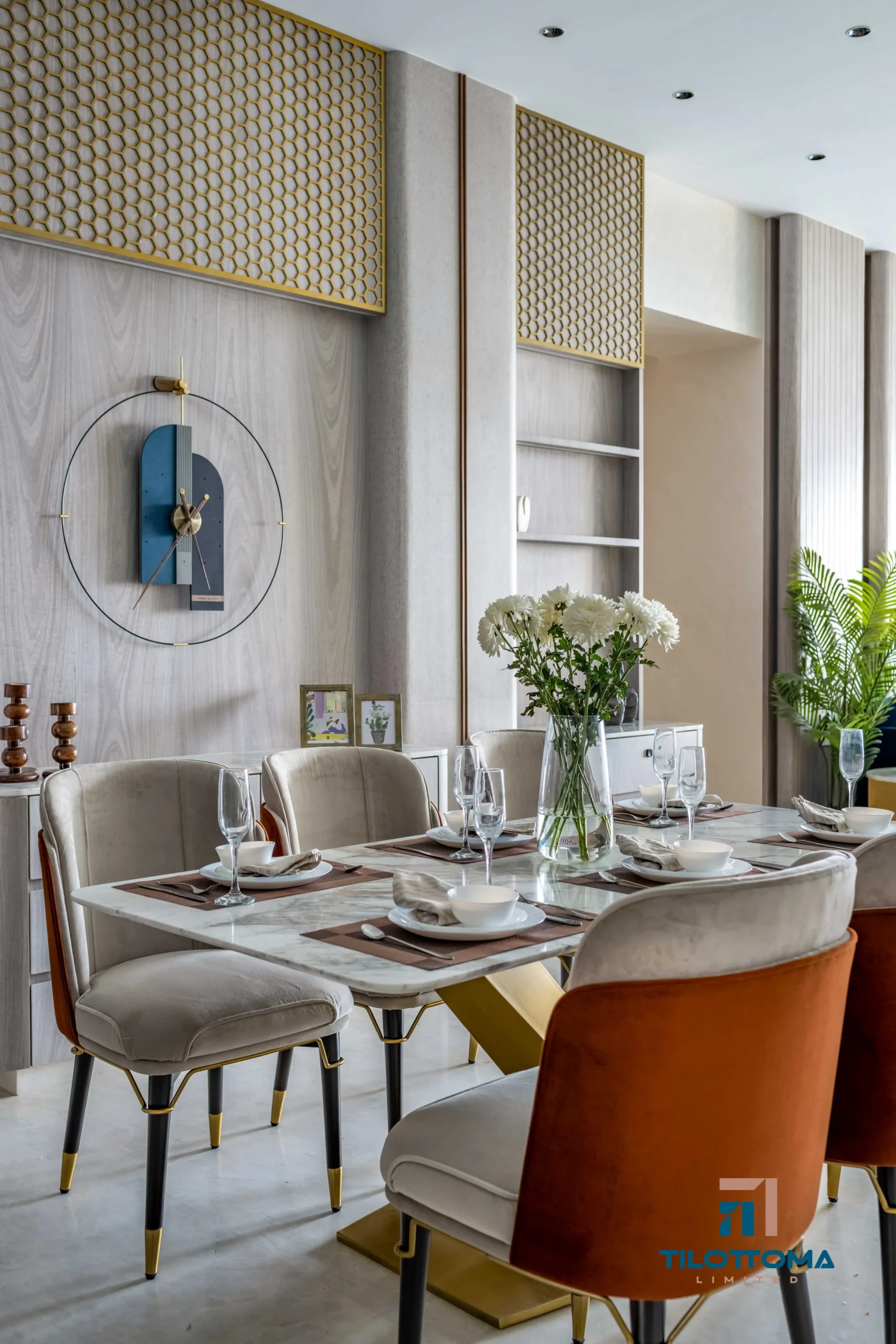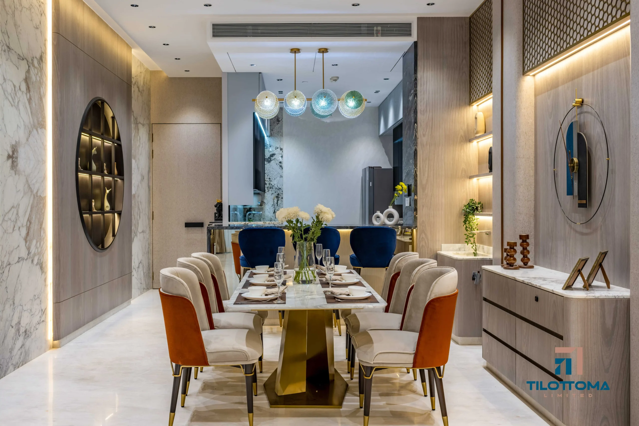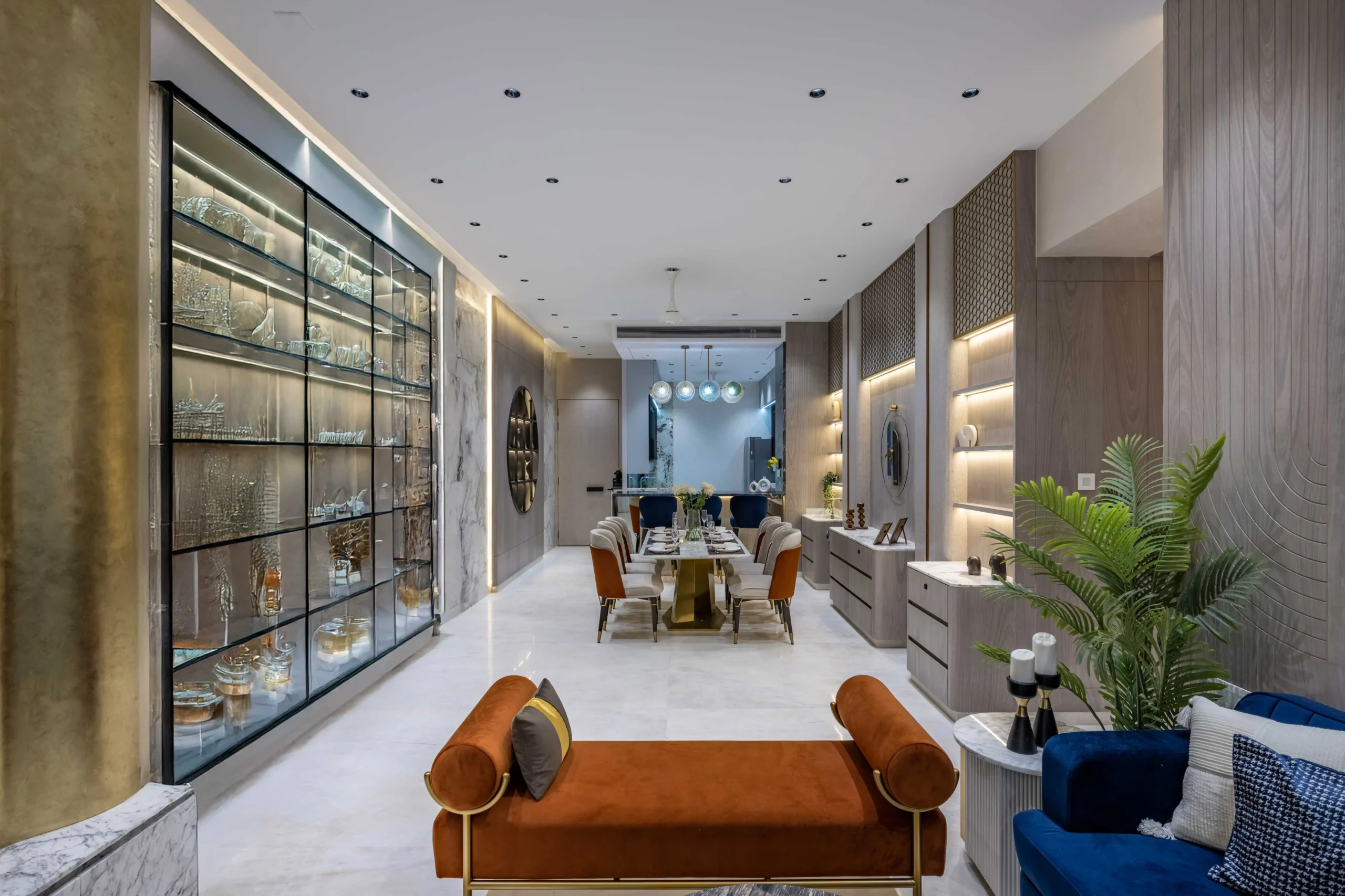 Every corner of this home reflects our attention to detail and craftsmanship, from the luxurious dining zone with marble highlights and ambient lighting, to the intricate wooden finishes and hand-polished cabinetry. Every piece was custom-made, ensuring perfect alignment with the client’s taste and lifestyle.